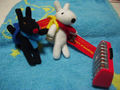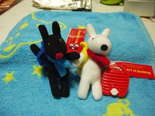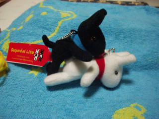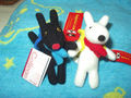 向かって右の白い子が「ツカ」、左の黒い子が「サダハール」です。ノートを持たせてみましたよ。ちょっとでかいけど。