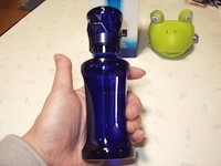 そう。「ポーション」。FFファンとしては買わないわけにはいかんでしょうと、プレミアムボトルの方を1本。いやあ、本当に綺麗な青だ。ガラス瓶好きの血が騒ぎますね、これ。実は私はガラス瓶が大好きで、瓶欲しさにニールズヤードのハーブオイルを買ったりするような馬鹿なんです。あとは、香水のミニチュアボトルコレクターだったり。…ほんとにこの人は収集癖があるんだな。部屋がせまくなるわけだよ。