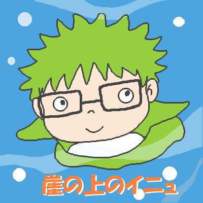 イニュ、イニュ、イニュ、さかなの子。四角い眼鏡の男の子ー。