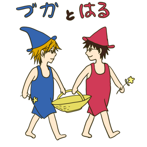 少し前に、しりとりで「ぐりと○ら」と答えてくださった方がいらしゃいましてね。そのときに、「よし!眼鏡達で再現だ!」と狙っていたのです。 いやー、難しかった。あの可愛さを再現するのはもう無理!なので、雰囲気だけ味わっていただけると嬉しいです。 間違っても、見比べちゃだめです。 この「づかとはる」も、誕生日のケーキのかわりに大きなカステラを作ったりするんですよ、きっと。で、森の中にいる仲間(青学メンバー)も集まって、みんなでおいしくいただくんだよ。まあ、なんてほほえましい。 そういえば、ずーっと以前リサ○スネタも描いたっけ。そんときは「ヅカとサダハール」でした。こんなことばっかりやっているサイトです。 2010.11.04 |