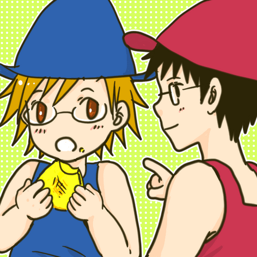 手塚は、お顔にカステラのかけらが付いてますよ。乾が教えても、それに気づかない手塚。きっとこのあと、そのかけらを食べちゃうと思います。